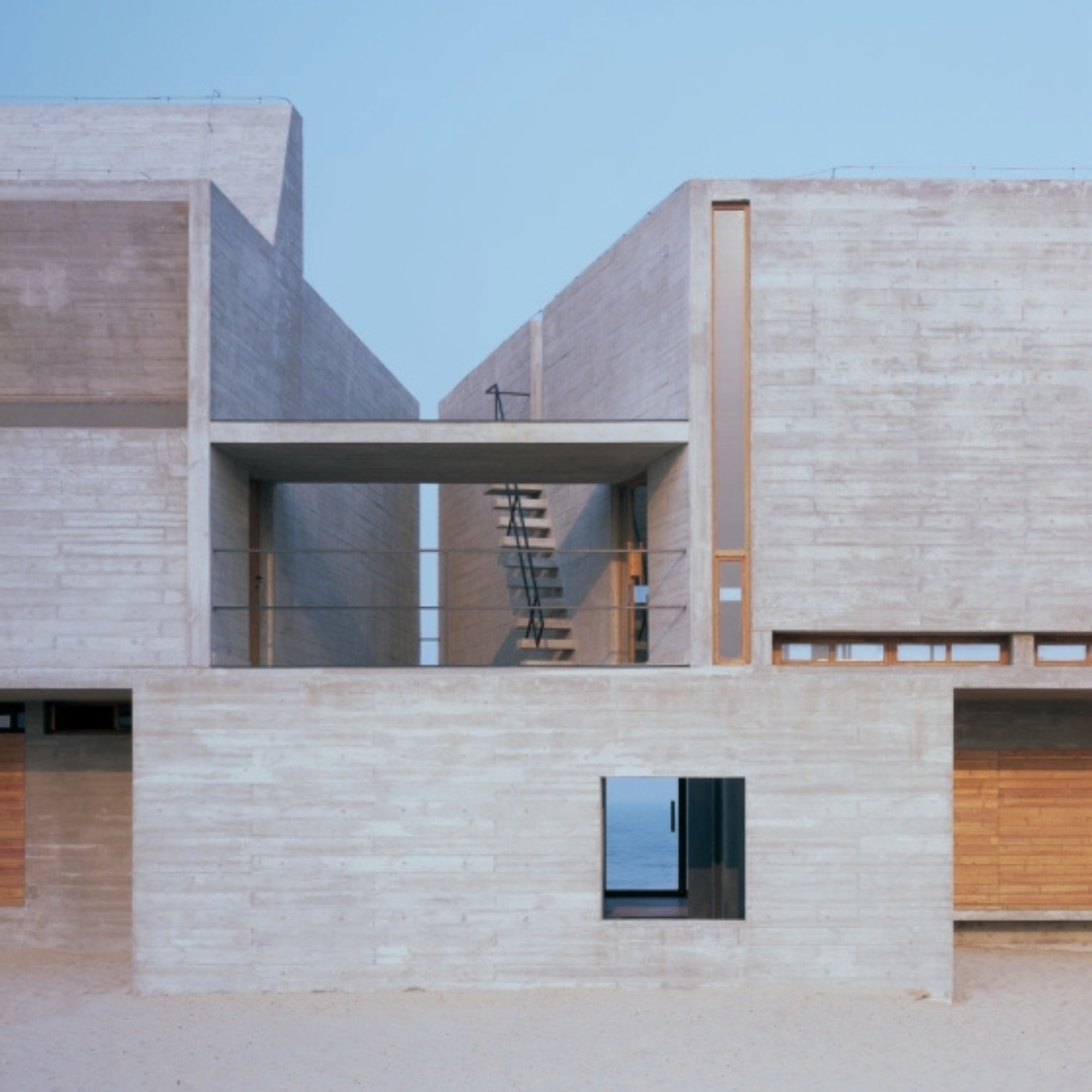 - Captures the integration of architecture with dramatic natural landscapes.