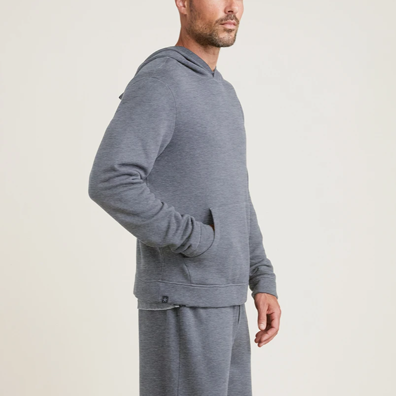Barefoot Dreams' new French Terry fabric is soft, cozy, and perfect for everyday wear. Inspired by luxe athleisure wear, with a lightweight hood, kangaroo front pocket, and slightly tapered sleeve, this hoodie will take you from your morning coffee run to cool evenings at the beach and everything in between. Pair it with the Malibu Collection Men's French Terry Sweatpant for a coordinated lounge look.