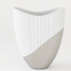 Modern and sophisticated, this vase comes in a cool white tone and seems to be "dipped" in a metallic silver asymmetrically across the bottom.