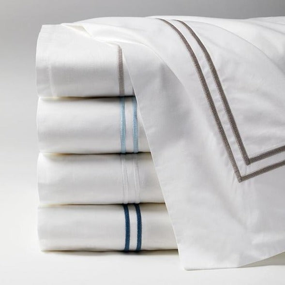 Like the crisp, tailored sheeting that graces the finest hotels in the world, Sferra's best selling percale bedding is embroidered with double rows of satin stitch woven by masters in Italy.